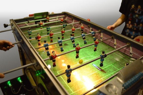 Connecté au Wi-fi, le baby-foot « nouvelle génération » passe alors à la vitesse supérieure : le plancher s’illumine, détecte la balle et la trace en affichant un marqueur rouge qui la suit dans son parcours.