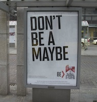 Un collectif international de six associations de lutte contre le tabagisme des mineurs fait actuellement pression sur Philip Morris International concernant la campagne « Dont’be a may be, Be Marlboro » (« ne soyez pas peut-être, soyez Marlboro »), lancée en 2012 et diffusée dans plus de 50 pays où la publicité pour le tabac est encore autorisée. Ce collectif vient de publier un rapport de 24 pages, pas moins, pour demander au fabricant de stopper lui-même la campagne et de rendre publiques toutes les données de « retour ». Ceci afin d’en quantifier « l’influence ».