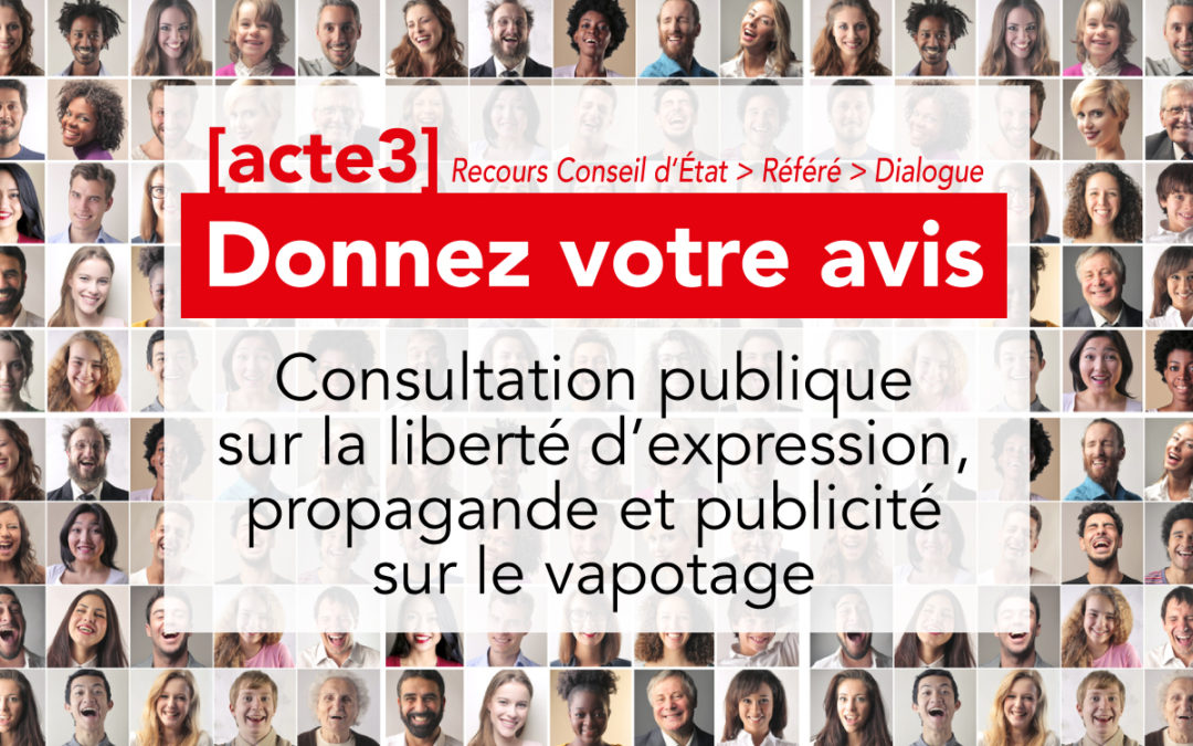 (…) Toutes les associations concernées par la vape sont appelées également à apporter leurs contributions à la discussion : Vape du Cœur, Aiduce, Fivape…