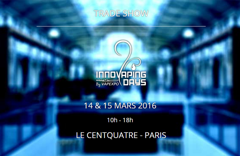 Innovaping-DaysAvec plus de 50 exposants et 100 marques présentes, la seconde édition du trade show « Innovaping Days by VapExpo » (voir Lmdt des 22 janvier)  affiche complet. Même si la participation semble en légère régression par rapport à 2015 (voir Lmdt du 10 mars 2015), du fait de la conjoncture ou de la concurrence d’une autre manifestation à des dates rapprochées (voir Lmdt du 2 février 2016 et 15 décembre 2015).
