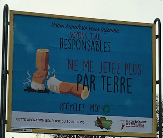 Autant dire que le message en pleine affiche – avec un grand visuel de mégots – a été particulièrement vu : « Votre buraliste vous informe : soyons tous responsables … ne me jetez plus par terre ». Sandra Salgado a reçu un message d’encouragements de Richard Ramos (député MoDem du Loiret).