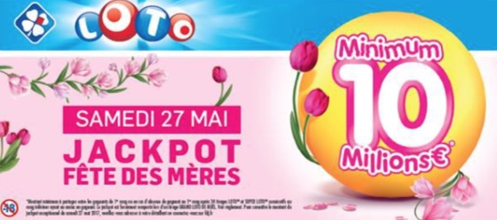 La Française des Jeux propose, ce samedi 27 mai, un jackpot exceptionnel de 10 millions d’euros pour la Fête des Mères. Il s’agit du deuxième jackpot événementiel depuis le lancement de la nouvelle formule Loto (voir Lmdt des 23 et 25 février) ; le même gain étant utilisé à l’occasion de ce lancement.