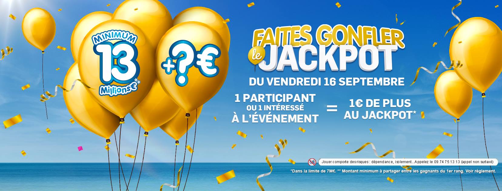 • Pour la première fois de son histoire, Loto va proposer à tous les Français de définir le montant final du jackpot Super Loto. Chacun est invité, jusqu’au 9 septembre, à se connecter sur la plateforme Facebook et à rejoindre l’événement « Faites gonfler le jackpot » (lien) pour faire augmenter la cagnotte de ce tirage exceptionnel. Le principe : 1 participant = 1 euro de plus au jackpot Super Loto, (le jackpot initial s’élevant à 13 millions d’euros).
