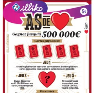 Ce nouveau jeu de la gamme illiko permet de remporter jusqu’à 500 000 euros pour une mise de 5 euros et présente une chance sur 2,92 de remporter un lot.