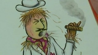 Mais voilà qu’un troisième épouvantail nommé Reginald Rake (râteau) vient semer la zizanie dans le couple en tentant de séduire Betty : « je suis l’épouvantail le plus malin du monde, c’est sûr / Je connais des tas de chansons / Je sais danser et conduire / Je suis éblouissant ! Je suis audacieux ! Y’a pas plus cool que moi ! / Je sais même faire des ronds de fumée, regarde un peu ! ». Après que Betty lui eut répliqué que le tabac était mauvais pour sa santé et qu’il devrait avoir honte, Rake est pris d’une quinte de toux et, ce faisant, projette les cendres chaudes de son cigare sur la paille qui prend feu.