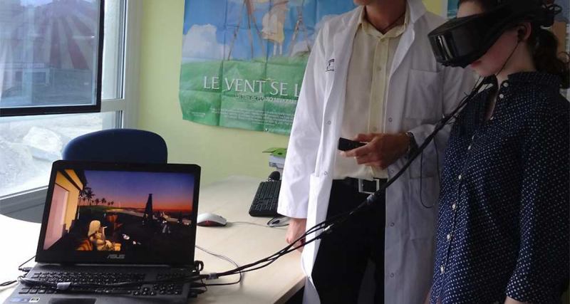 Munis de lunettes 3D, les candidats sont plongés dans des situations de sollicitation plus vraies que nature : une pause cigarette au bureau, un café en terrasse, une soirée festive … L’univers reconstitué est celui des jeux vidéo peuplé d’avatars paramétrables. « La thérapie cognito-comportementale prépare le patient à gérer les situations qui activent le circuit de récompense, responsable des bouffées de manque, mettant la volonté à l’épreuve », a explique aux Échos le Docteur Éric Malbos, spécialiste du traitement en réalité virtuelle à l’origine de cette solution et qui coordonne cet essai.