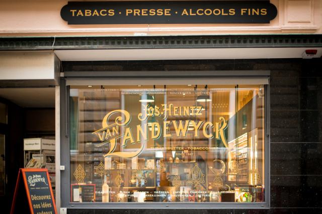 Landewyck a fait appel à un spécialiste du retail (la société Valora, à la tête d’un réseau de 70 points de vente dans le pays), qui a opté pour un positionnement haut de gamme de cette « Tubaksbuttek », caractérisé par un lettrage à la feuille d’or réalisé à la main. « Cela fait plus de 30 ans qu’il n’y avait pas eu de lettrage de ce type en ville », précise Charles Lemmer, « tout l’aménagement de la boutique a été conçu par des artisans luxembourgeois. Cela nous tenait à cœur, nous qui sommes aussi une entreprise luxembourgeoise ».