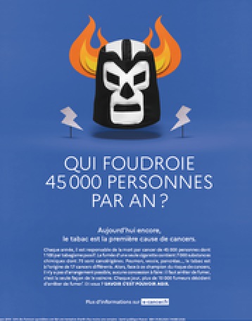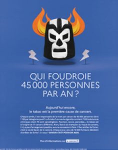 Avec des pages apparaissant dans les journaux portant l’accroche suivante : « Qui foudroie 45 000 personnes par an ? Aujourd’hui encore, le tabac est la première cause des cancer ».