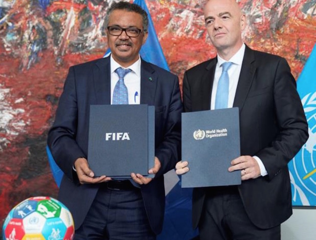 Un mémorandum d’accord a été signé à Genève, au siège de l’OMS, par le Directeur général de l’OMS, le docteur Tedros Adhanom Ghebreyesus, et par le Président de la FIFA, Gianni Infantino. Pas moins.