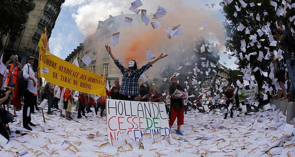 Lors de la manifestation des buralistes, devant le Sénat, fin juillet (voir Lmdt du 22 juillet), de nombreux témoins se souviennent de cet escogriffe masqué avec un grand panneau rectangulaire sur lequel apparaissaient des mots coloriés : « Hollande cesse de nous enfumer ». La photo, si parlante, a fait le tour des quotidiens du lendemain.