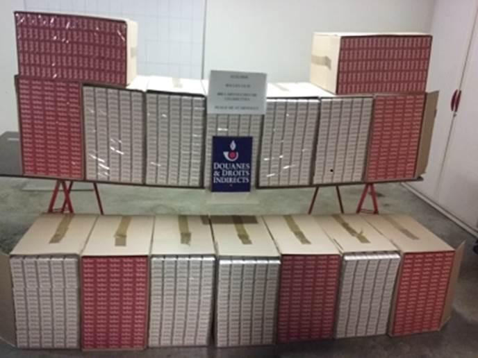Après avoir demandé au conducteur s’il transportait de la marchandise pouvant intéresser la Douane et malgré une réponse négative à cette question … les douaniers ont poursuivi le contrôle. La fouille complète a permis d’extraire 16 cartons de cartouches de Marlboro.