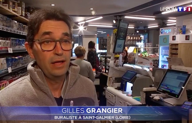 •• Pragmatique le journal de 20 heures de TF1 … qui a tenté l’expérience chez Gilles Grangier (président des buralistes de la Loire / voir 23 et 11 janvier) dans son multi-services à Saint-Galmier (à une vingtaine de kilomètres de Saint-Étienne).
