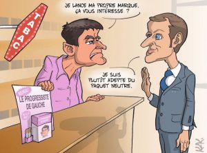 Dans l’Opinion de ce jour, La Cigarette du Buraliste sert à illustrer le soutien de Manuel Valls à Emmanuel Macron, annoncé le même jour que son lancement.