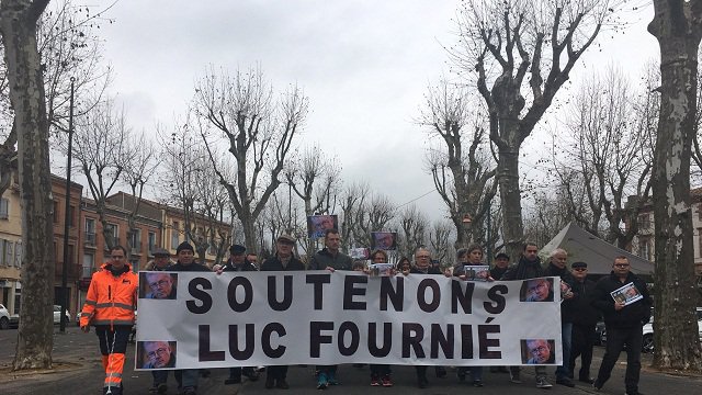 Environ 200 personnes ont manifesté, ce lundi 9 janvier, à Lavaur en soutien à Luc Fournié, condamné à dix ans de prison pour avoir tué un jeune homme entré par effraction dans son bar-tabac (voir Lmdt des 16 et 12 décembre 2016).