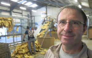 •• Le jour du reportage, une dizaine de saisonniers s’activaient dans le bâtiment dédié au séchage, au triage et au conditionnement. Après cinq à six jours passés dans un four (entre 41 et 65 °) et après une phase de réhydratation, les feuilles vertes constituées à 90 % d’eau auront pris la teinte brunâtre et la texture que l’on connaît au tabac.