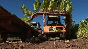 « Le tabac, c’est fini pour nous. On a arrêté, cette année, à cause du travail que cela demande. Vous savez, c’est une culture qui demande beaucoup de main-d’œuvre. Le tabac, ça s’effeuille et ça se rentre à la main. Alors, quand vous vous rendez compte que le prix a chuté de 3,80 euros à 2,50 euros du kilo, le calcul est vite fait… ».