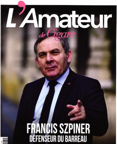Tête de liste LR, soutenu par Rachida Dati, dans le 16ème arrondissement de Paris, le célèbre avocat Francis Szpiner a également droit à la Une du dernier numéro de l’Amateur de Cigares.