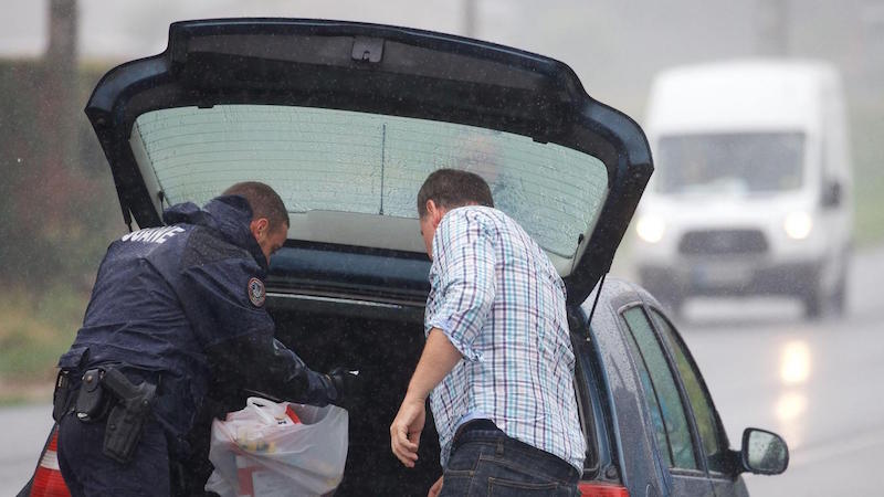 Une Audi grise est arrêtée sur le bas-côté. Le conducteur a fait ses emplettes, mais rien d’abusif : 200 grammes de tabac. Ce que les douaniers recherchent, c’est le « caractère commercial » : « deux cartouches pour une personne, ça passe », explique un gendarme, « mais une cartouche pour soi et quatre pour la famille, ça rentre dans le caractère commercial. Ça va être saisi puis détruit. »