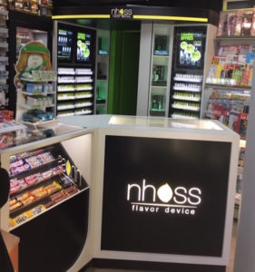 •• L’un des premiers effets de la fusion se verra, en fait, dans les points de vente : Nhoss ayant la ferme intention de continuer à implanter la vape avec des outils à la vente adaptés et un aménagement spécifique : de la vitrine digitale au vaping bar. Sous le label « Maison du vapotage ».